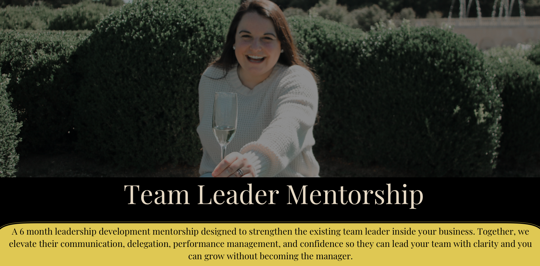 This mentorship turns your team leader into the confident, strategic, empowered leader your business needs so your operations, client delivery, and team communication run smoothly without you having to manage every detail.